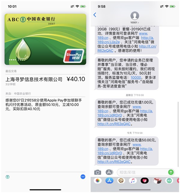 每日首次使用Apple Pay银联卡支付可以享受满50减10元优惠 小编也刚亲测可以用来充话费