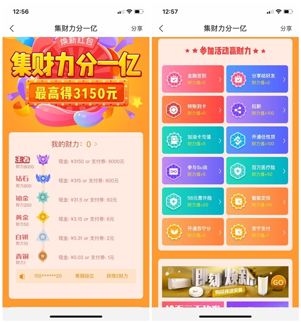 苏宁集财力瓜分1个亿 最高可拿3150元现金或6000元支付券