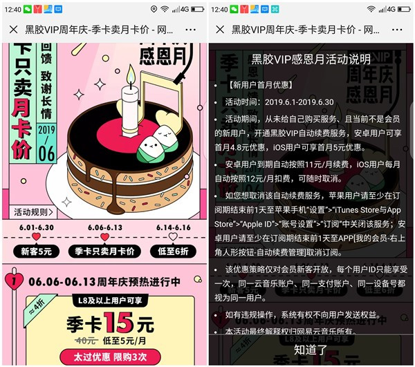 网易云音乐等级8级以上用户15元开通3个月网易云音乐黑胶会员